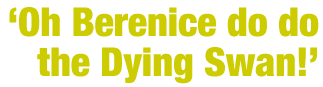 I particularly remember my blind grandfather and my grandmother playing, and my dear Aunt Jane who used to sing Victorian comedy songs. When I got older and I was at Ballet School, my aunt’s would chorus, ‘Oh Berenice do do the Dying Swan!’ and I did it as a comedy. They all clapped and asked for it every year.